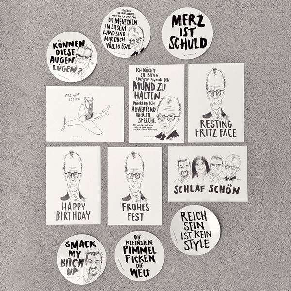 Das Ekelpaket mit allen Merz-Karten und -Aufklebern.